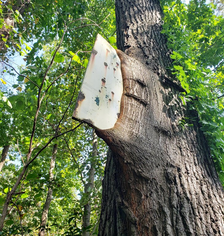 13. ภาพนี้ช่วยยืนยันเราได้อย่างหนึ่งว่า ” ต้นไม้ ” สามารถกลืนกินได้ทุกอย่างจริงๆ (แม้กระทั้งป้ายที่ติดไว้บนต้นของมัน)