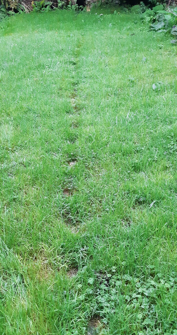 4. รอยเท้าของแมวสองตัวที่ใช้เส้นทางเดียวกัน เพื่อเดินข้ามสนามหญ้าแห่งนี้