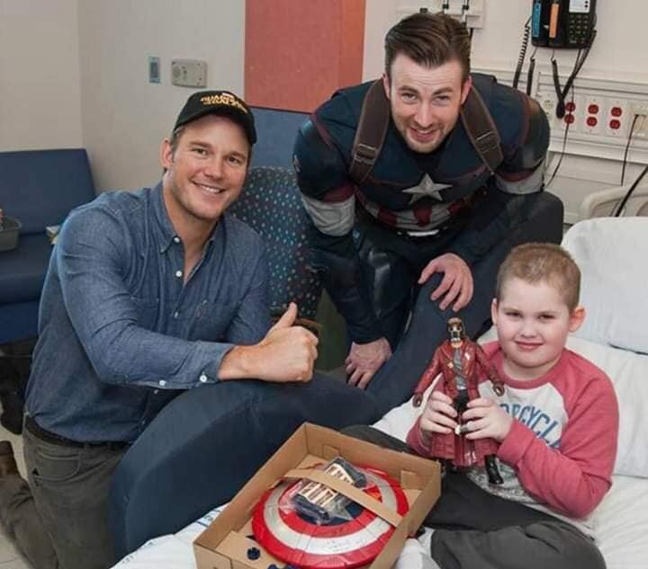 2. เด็กหนุ่มที่ป่วยจนต้องเข้ารักษาตัวที่โรงพยาบาล ทำให้พลาดไม่ได้ดูหนัง Avengers แต่วันนี้เขาไม่ต้องเสียใจแล้วนะ เพราะทั้งสตาร์ลอร์ด และกัปตัน อเมริกามาเยี่ยมถึงที่แล้ว